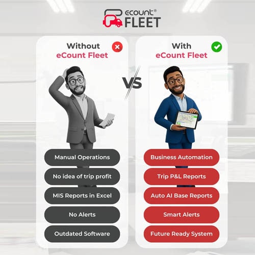 Simplify fleet management with eCount Fleet. Automate data entry, reports, and operations with cloud-based transport management software for Indian logistics.